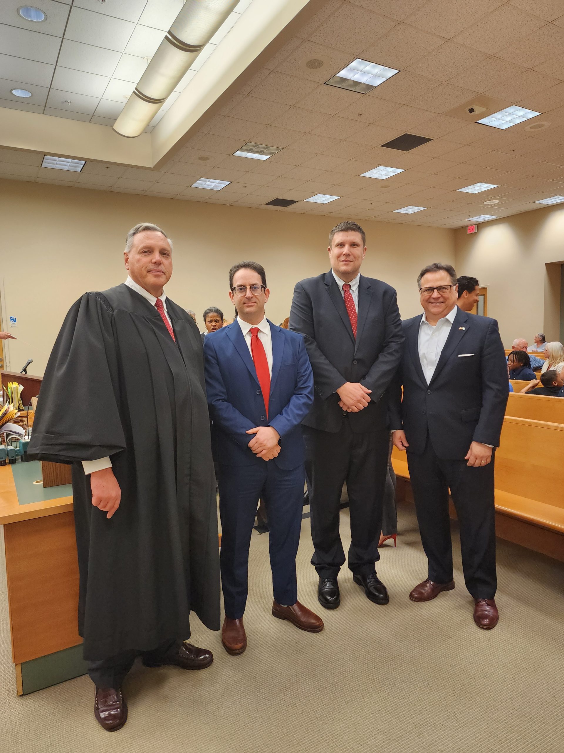 Pictured from left to right: (1) Waterbury Administrative Judge, John Cordani; (2) Waterbury Bar Association, Young Lawyers Section Chief, Jeff Beck; (3) Waterbury Bar Association President, Bryan McEntee; (4) Waterbury Mayor, Paul Pernerewski.